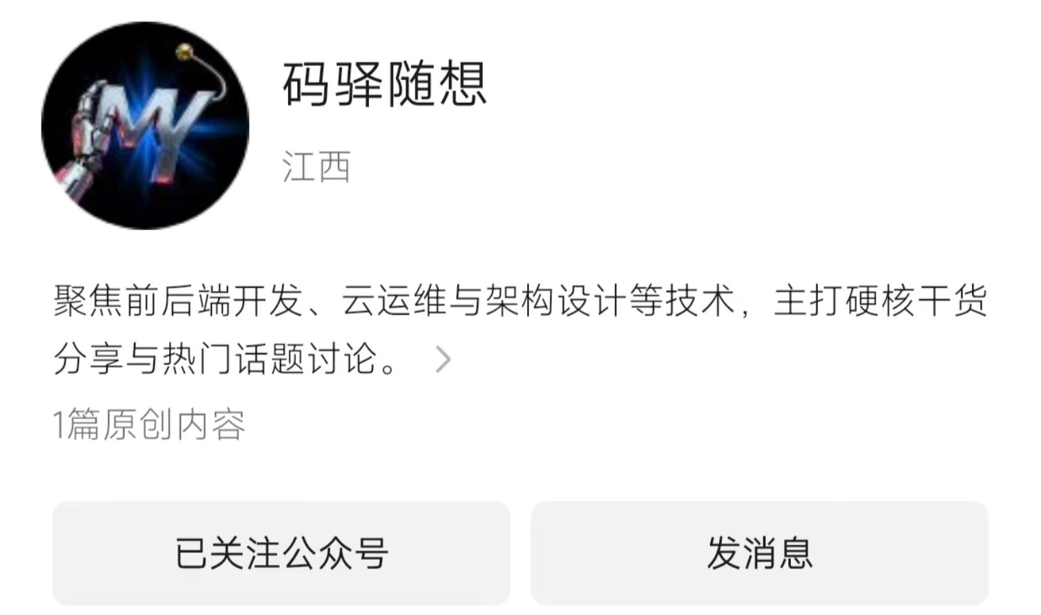 🔈我的个人公众号“码驿随想”已于10月10日正式开通,一些精选笔记内容会在上面同步发布,核心内容为“聚焦前后端开发、云运维与架构设计等技术,主打硬核干货分享与热门话题讨论”,欢迎大家关注捧场!🎉